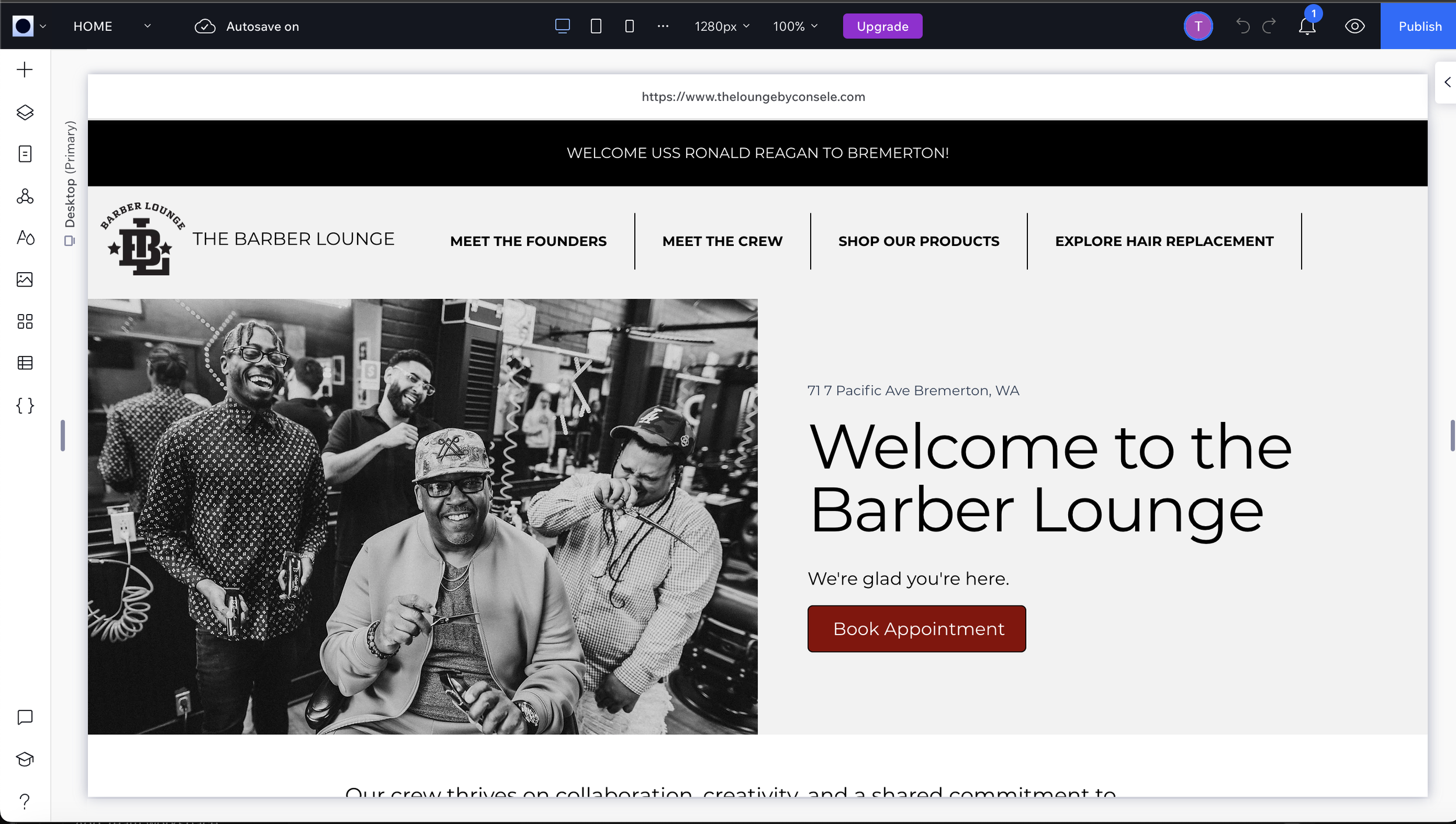 Responsive Design: I also took advantage of Wix’s built-in responsiveness features to ensure that the site looked great on all devices, from desktops to mobile phones. This was crucial in providing a consistent user experience across various platforms, catering to the diverse audience of the Barber Lounge.